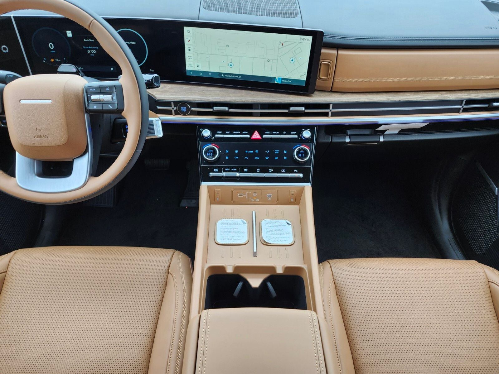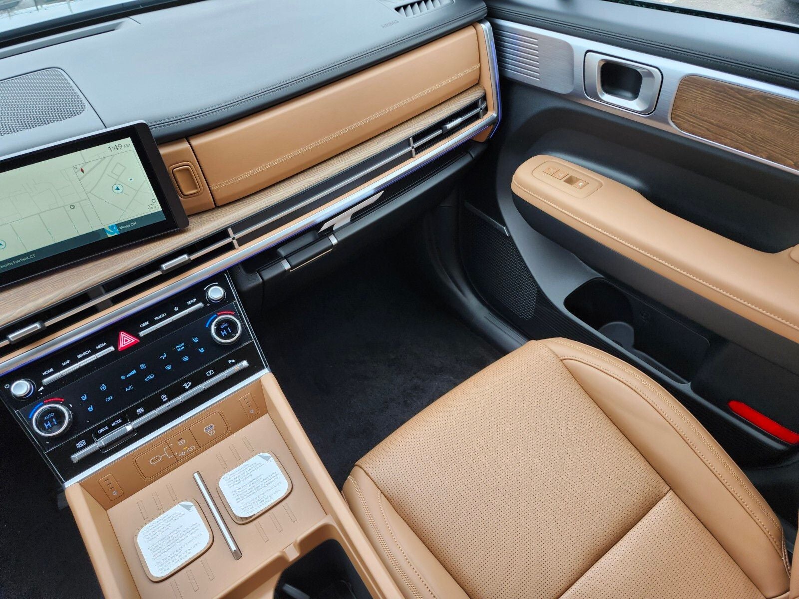 - Radio: AM/FM/HD Bose Premium Audio System -inc: 12 speakers including subwoofer, external amplifier, 12.3" wide touchscreen, Apple CarPlay and Android Auto, Bluetooth® hands-free w/wireless audio streaming, dynamic voice recognition, USB connectivity, SiriusXM, Blue Link+ connected car system, over-the-air updating capability, navigation system including traffic flow w/incident data via HD Radio (HERE) and rear seat quiet mode