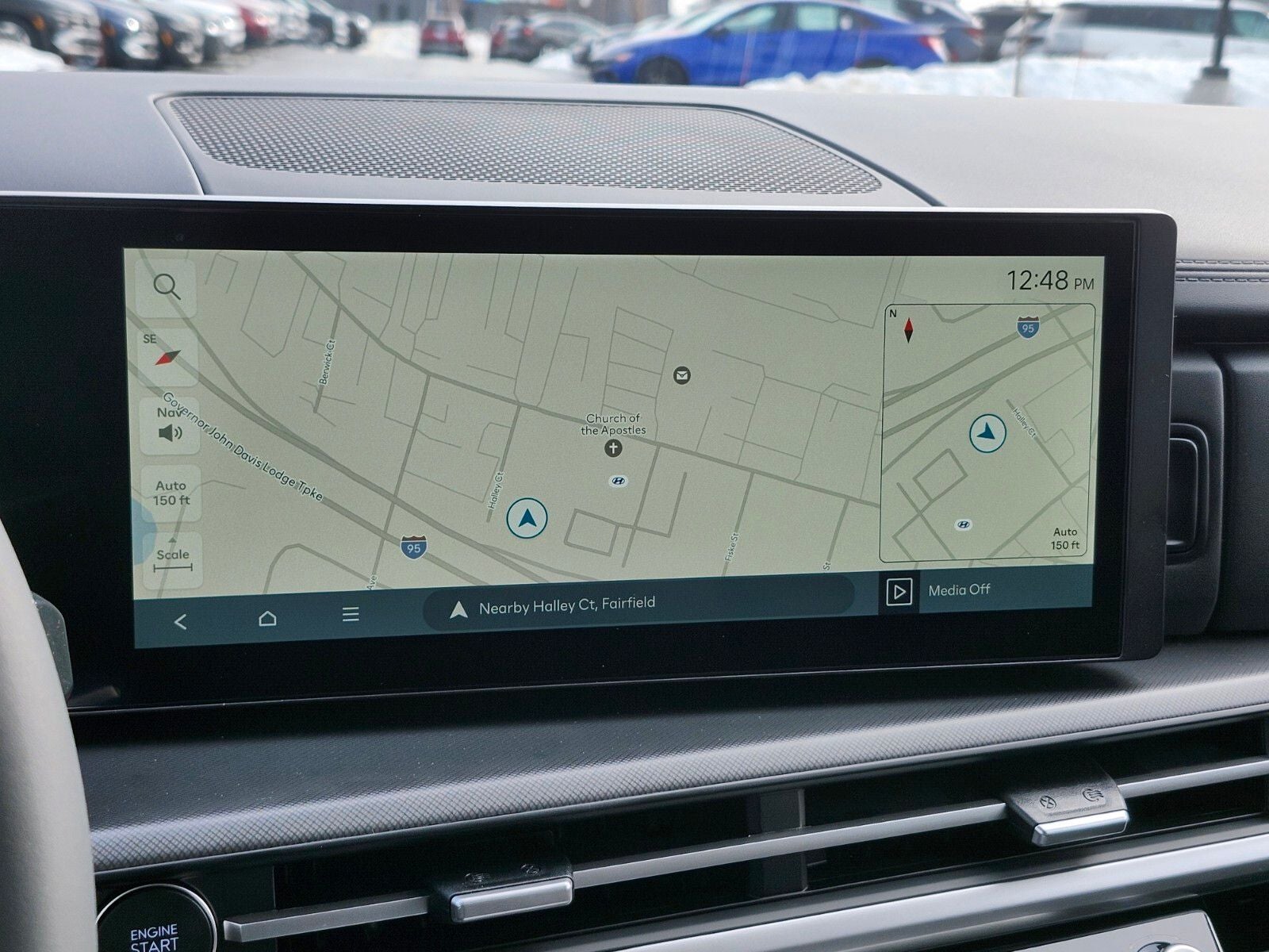 - Radio: AM/FM/HD Display Audio -inc: 6 speakers, 12.3" wide touchscreen display, Apple CarPlay, Android Auto, Bluetooth® hands-free w/wireless audio streaming, dynamic voice recognition, USB connectivity, SiriusXM, Blue Link+ connected car system, over-the-air updating capability, navigation system including traffic flow w/incident data via HD Radio (HERE) and rear seat quiet mode
