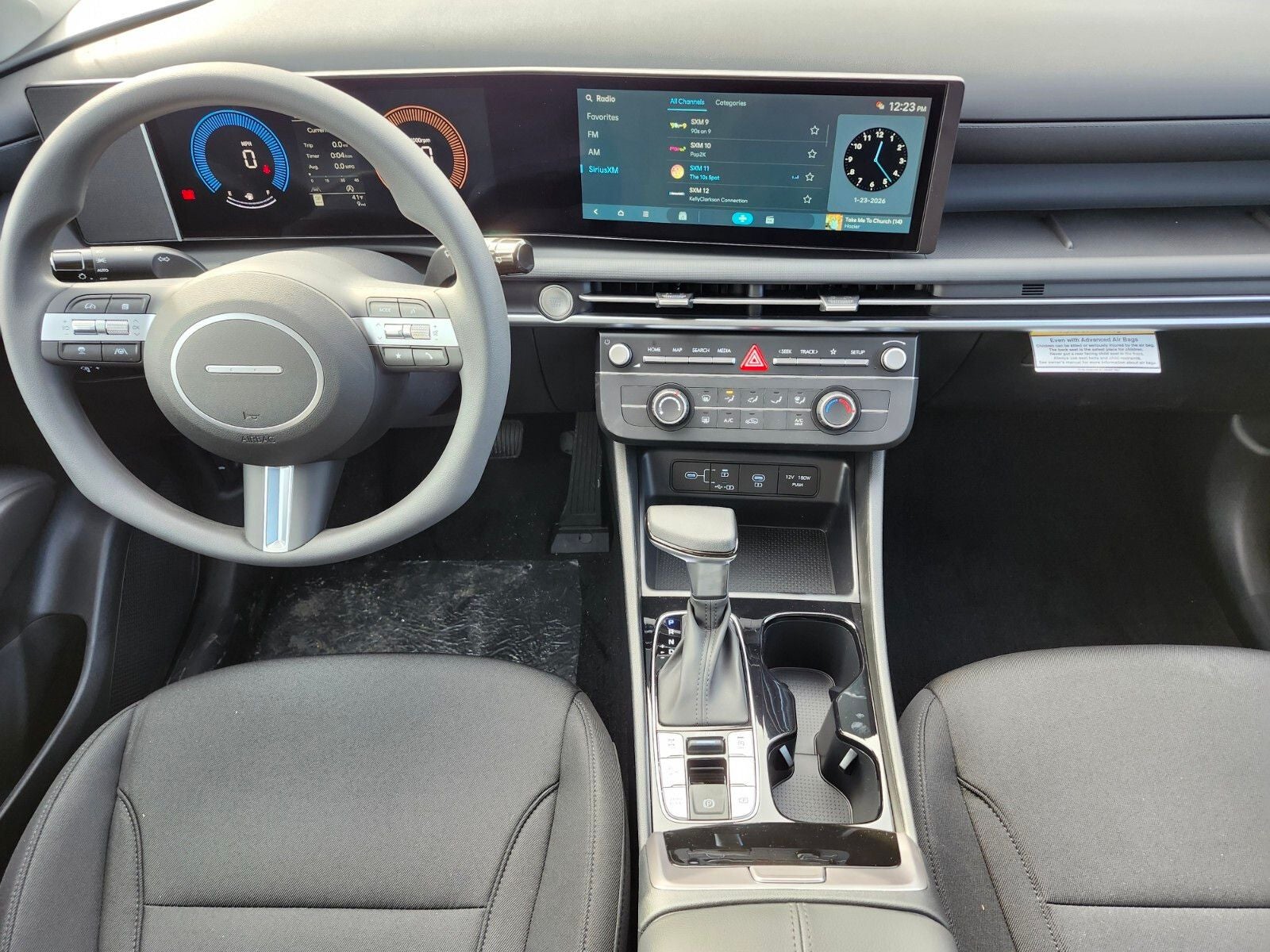 - Radio: AM/FM/HD Audio System -inc: 12.3" color touchscreen display, 6 speakers, SiriusXM satellite radio system (3-month trial subscription), wireless Apple CarPlay and Android Auto integration, controller OTA update capability, Blue Link connected car system and USB connectivity