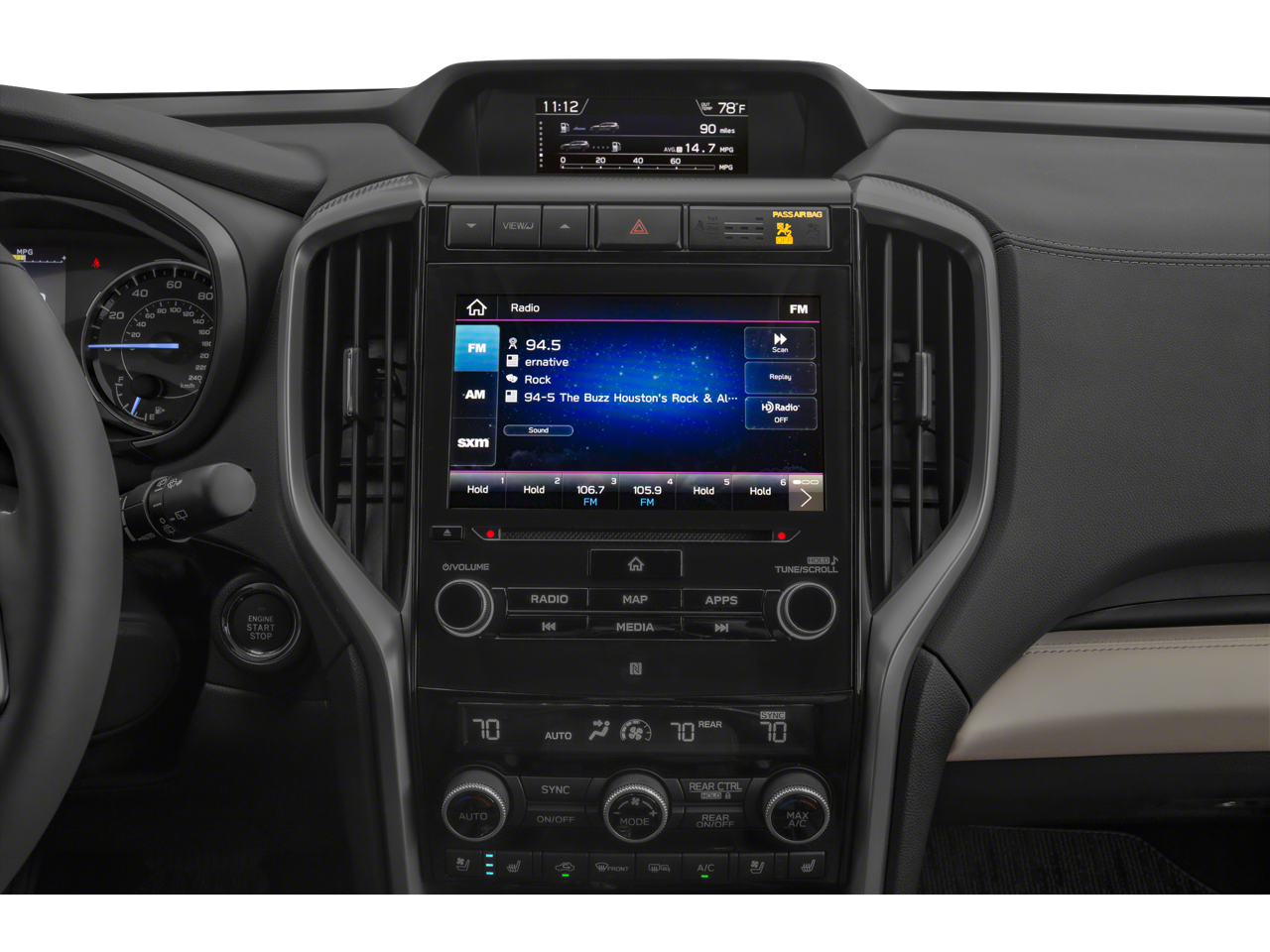 - Radio: Subaru STARLINK 8.0" Multimedia Nav System -inc: AM/FM stereo HD Radio w/single disc CD player, MP3/WMA/CRR/RW file capability, multi-touch gesture high resolution display screen, voice activated controls for radio and navigation, Bluetooth® audio streaming and hands-free phone connectivity (refer to subaru.com for cell phone compatibility), Bluetooth® hands-free SMS text messaging connectivity (refer to subaru.com for cell phone compatibility), Near Field Communication (NFC), iPod control capability, SiriusXM All Access radio (4 months free trial/subscription required after), SiriusXM Travel Link (3 years free trial/subscription required after), SiriusXM Traffic (3 years free trial/subscription required after), smartphone integration for Aha, Android Auto, Apple CarPlay, Pandora and STARLINK cloud applications, USB audio system update, TomTom navigation system update w/USB/Map Over The Air (MOTA) (3 years free map updates), steering wheel controls for audio and Bluetooth®, harman/kardon quantum logic surround sound speaker system w/14 speakers, subwoofer and harman/kardon 792 watt equivalent maximum output amplifier, 3.5mm auxiliary input jack and front, second and third row dual USB ports